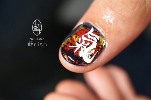 メンズネイル、漢字一文字を爪に描く。