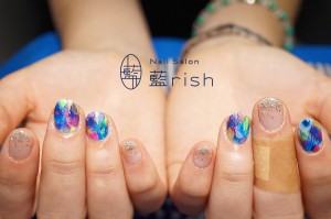 孔雀の美しい虹色の羽根から連想させ製作した作品。