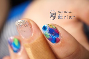 孔雀の美しい虹色の羽根から連想させ製作した作品。