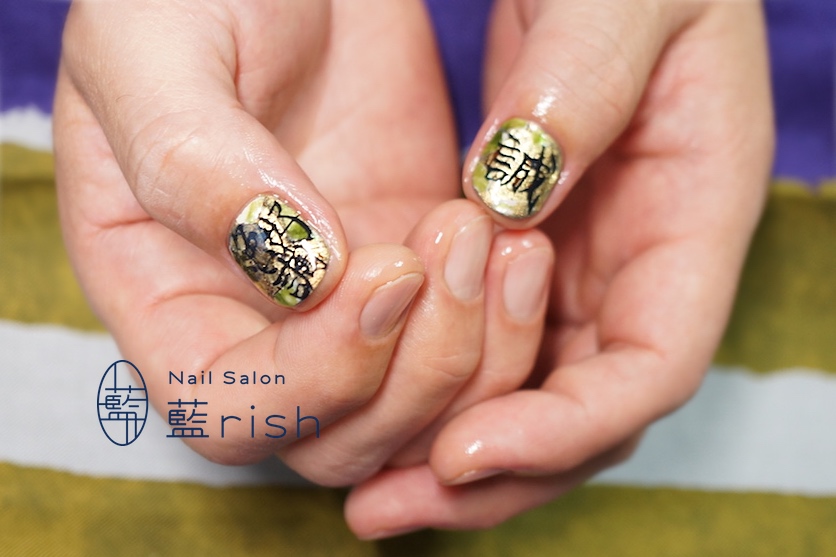 螺鈿と金箔生漆のコラボレーション、メンズネイル。
